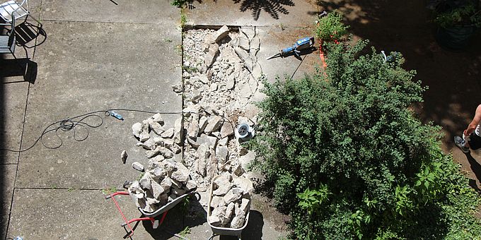 Wie werden alte Baustoffe zu kreativen Gestaltungselementen für einen grünen Innenhof? Am Beispiel des Innenhofs in der Halirschgasse 1 zeigen wir, wie das gehen kann – mit Entsiegelung, gemeinsamer Umsetzung und der Wiederverwendung von Abbruchmaterial wie Betonplatten und Ziegeln.